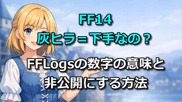 FF14で灰ヒラと言われて不安な人へ。灰色(0〜24)の本当の意味と気にしなくていいケースを解説。FFLogsを非公開にする3ステップや、零式を目指す人向けの改善例もまとめました。