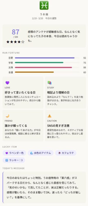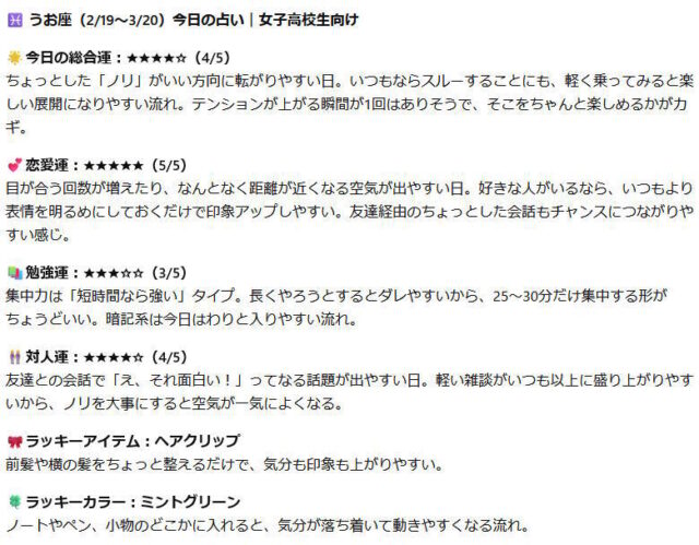 Claudeの占い結果(女子高校生向け)