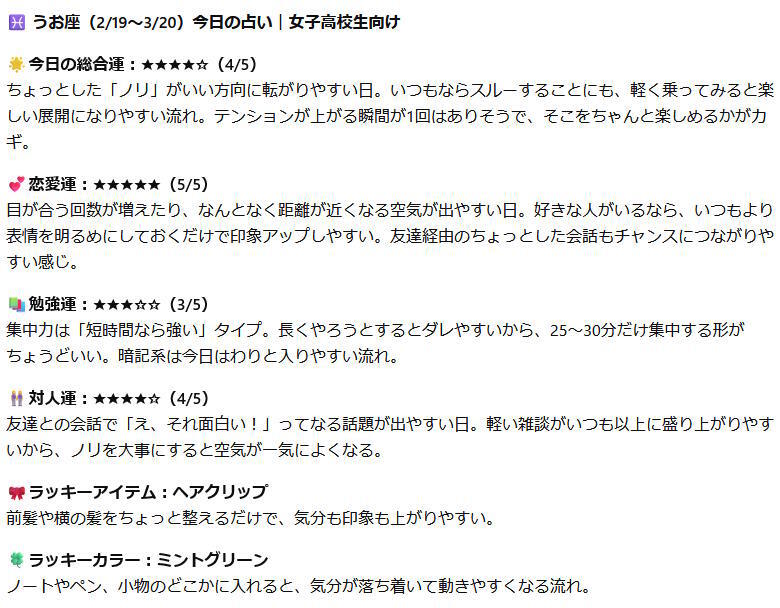 Claudeの占い結果(女子高校生向け)