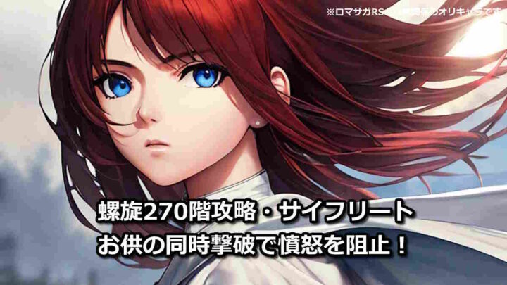 ロマサガRS【ロマサガRS】螺旋270階 最新攻略 3体のお供を同時に倒そう ロマサガRS 螺旋回廊270階・サイフリートの最新攻略法と安定クリアパーティの紹介。これだけ知ってれば勝てる知識のまとめも。『憤怒の共鳴』はお供を3ターン目に同時撃破して防ぎましょう。 2023.12.26ロマサガRS