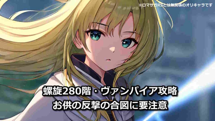 ロマサガRS【ロマサガRS】螺旋280階 最新攻略 お供の反撃に要注意 ロマサガRS 螺旋回廊280階・ヴァンパイアの安定攻略法と最新クリアパーティ例の紹介。これだけ知ってれば勝てる知識のまとめも。ボスの幻術は知力デバフで対策しましょう。 2024.01.21ロマサガRS