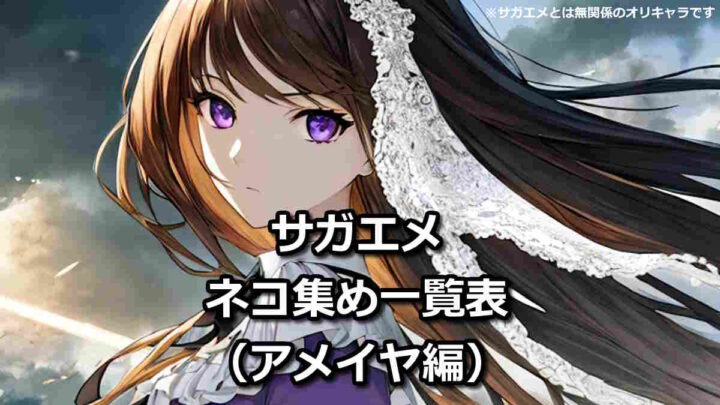 サガエメ【サガエメ攻略】ネコ集め(ネコアルバム)一覧表(アメイヤ編) サガエメ。ネコ集め(ネコアルバム)の一覧リストです。ネコの性能付き。序盤から強力な装備や術を厳選したい人に。 2024.05.07サガエメ