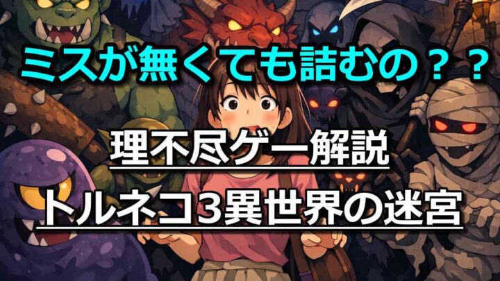 理不尽ゲー解説【理不尽ゲー解説】トルネコ3異世界|一歩で即死する容赦ない仕様 トルネコ3の異世界は「難しい」では足りません。ミスをしなくても詰む設計で、特にポポロ編は熟練者でも安定クリアが極めて困難。実際の死亡例と理不尽な仕様を具体的に解説します。 2026.03.29理不尽ゲー解説